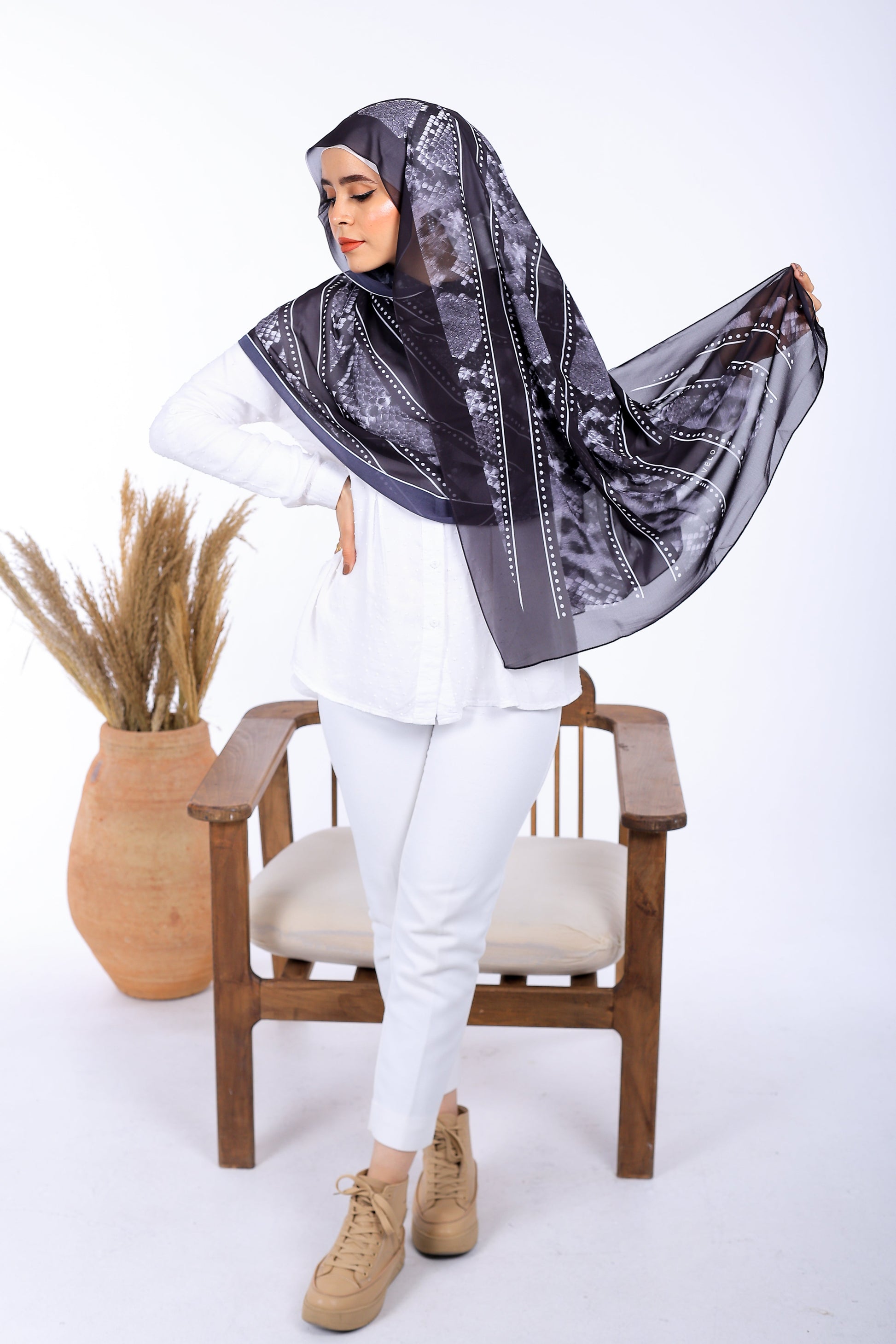 استمتعي بالأناقة والراحة مع حجاب الشيفون المطبوع من فريدة حجاب ، المصنوع من الشيفون خفيف الوزن عالي الجودة والذي يمنحك شعورًا بالنعومة واللطف على بشرتك طوال اليوم.