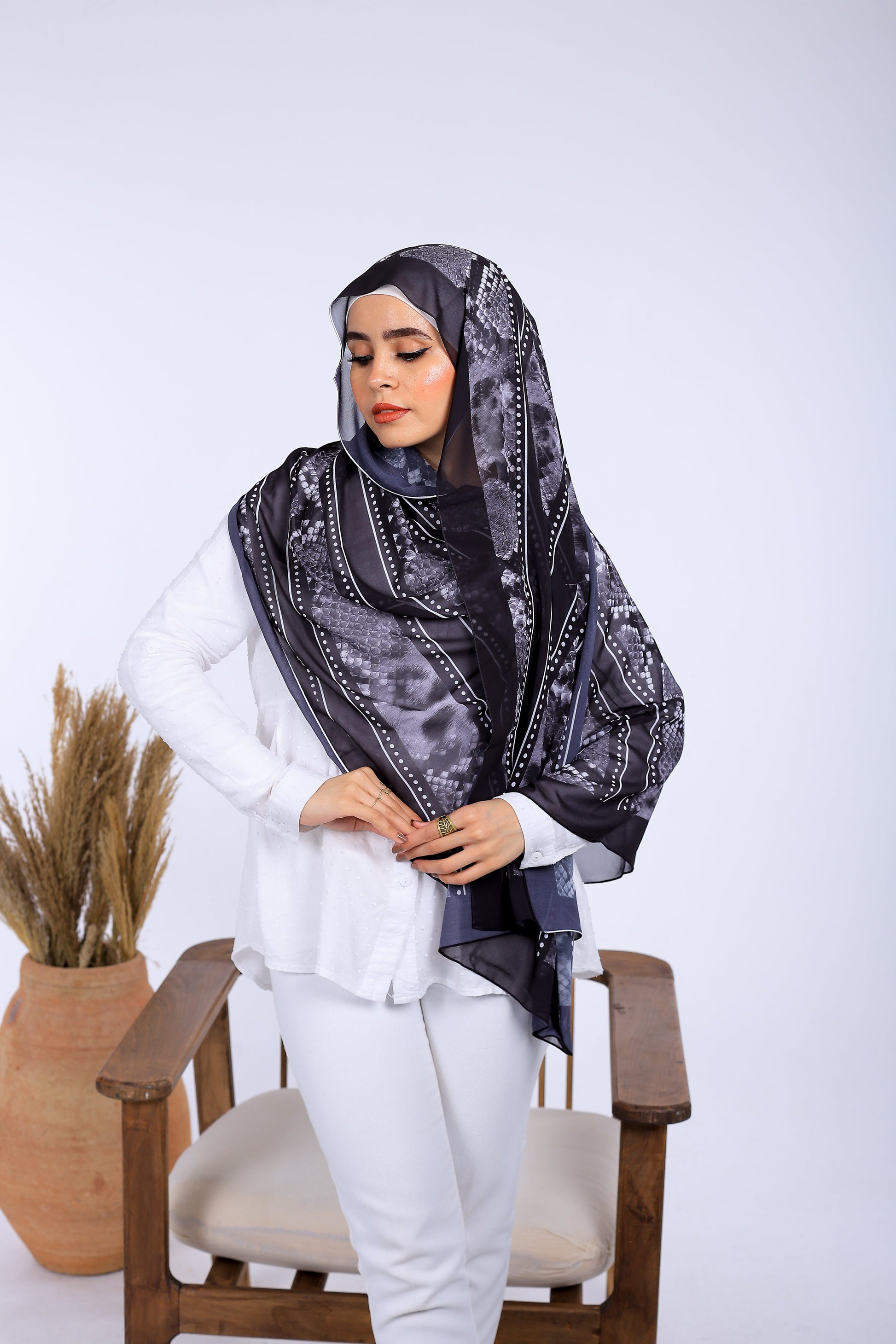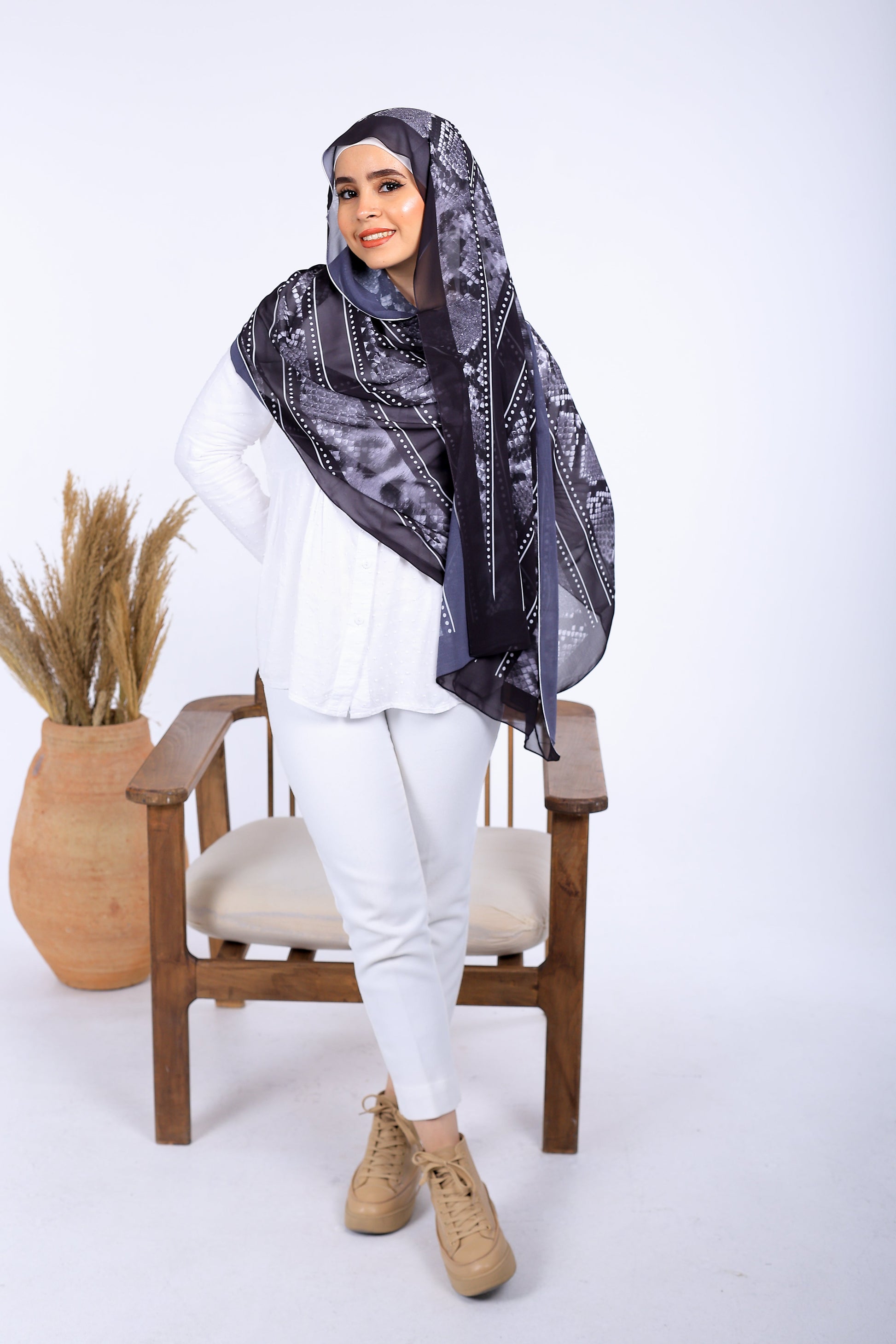 حجاب شيفون مطبوع من فريدة حجاب